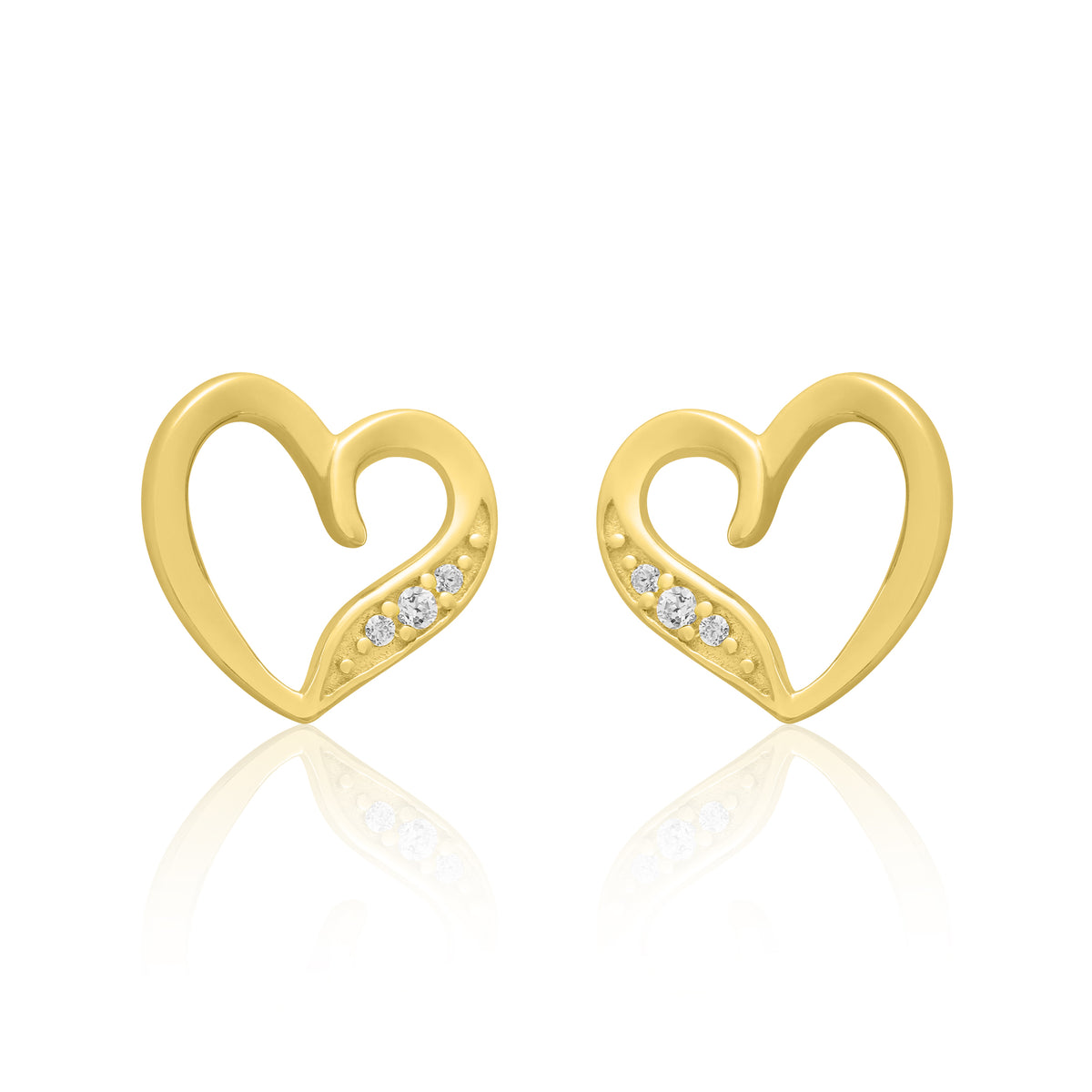 Sparkling Heart Stud Earrings - Yellow / 18KT / Natural Diamond