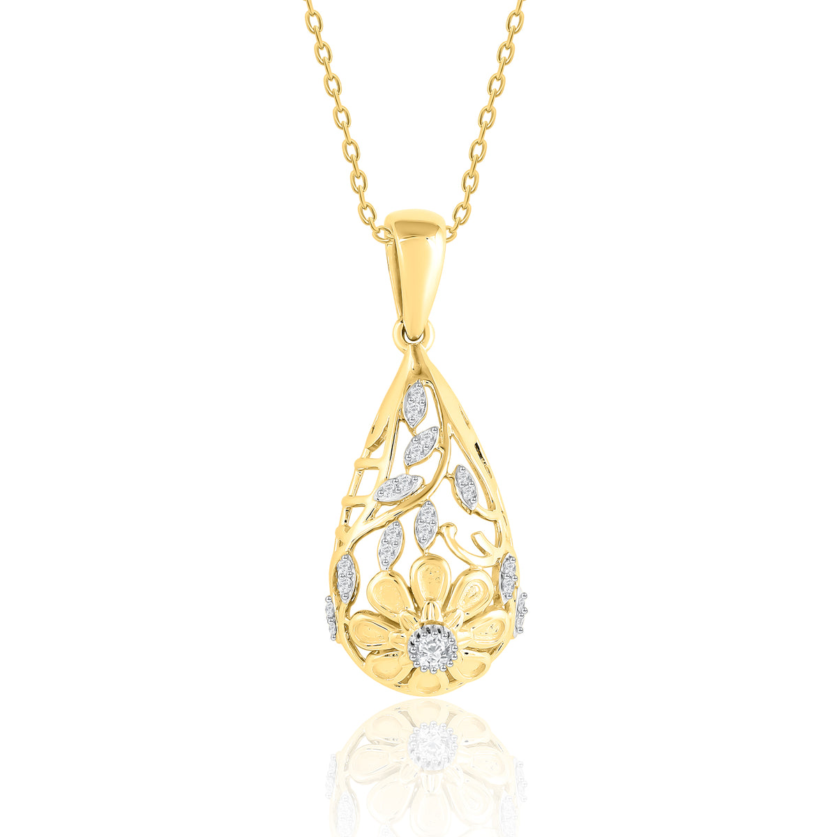 Floral Cage Diamond Pendant - Yellow / 18KT / Natural Diamond