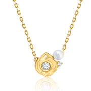 Rose Style Pendant Stunning Pearl - Yellow / 18KT / Natural Diamond